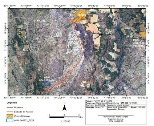 Descrição: Processo minerário em fase de Autorização de Pesquisa, localizado a aproximadamente 6 km da área de extração da Aura Almas (Mina Paiol), que possui Recursos Medidos e Indicados de 876 mil onças de ouro.