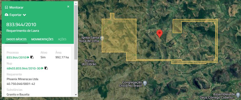 Descrição: Processo em fase de Requerimento de Lavra (Relatório Final de Pesquisa aprovado pela ANM em 11/10/2022), localizado nas proximidades de pedreiras de granito.