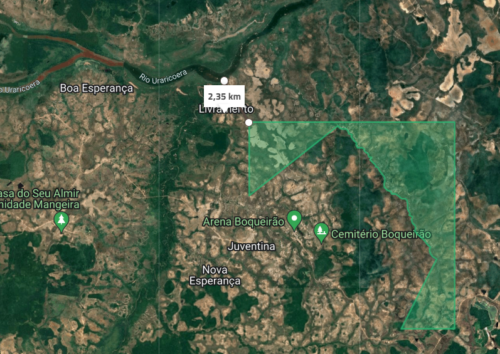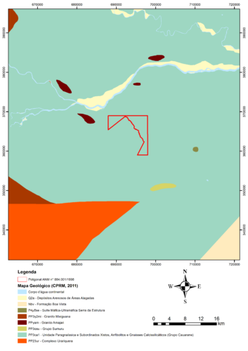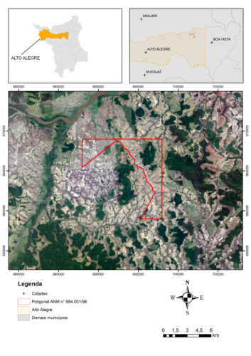 Descrição: Processo em fase de Requerimento de Autorização de Pesquisa (aguardando emissão de Alvará de Pesquisa), localizado a aproximadamente 2,35 km de distância de ocorrências minerais de Ouro (Rio Uraricoera).