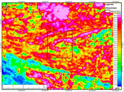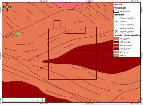 Descrição: Processo minerário em fase de Autorização de Pesquisa (Alvará de Pesquisa vigente até 08/06/2025 e Relatório Parcial de Pesquisa apresentado em 11/07/2023). Localizado nas proximidades garimpos de cassiterita e ouro.