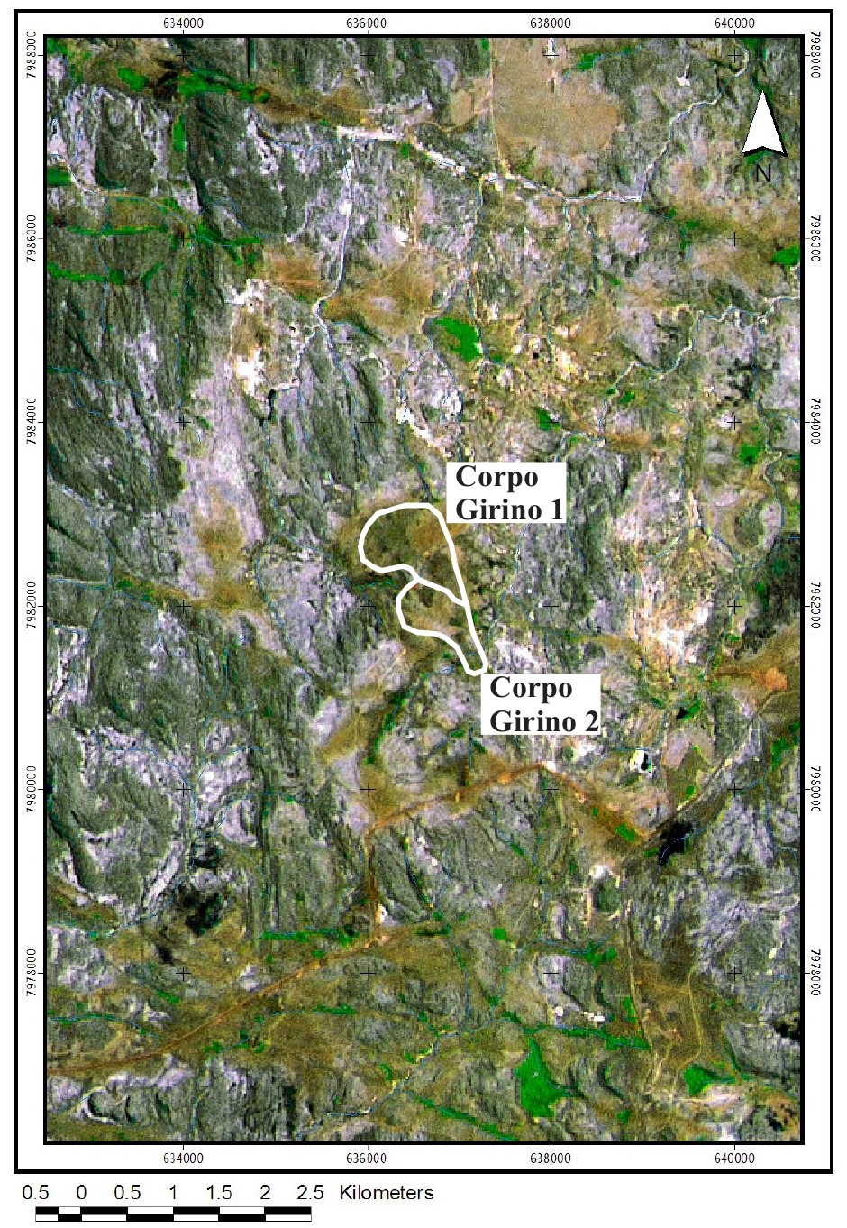 O volume das coberturas recentes recobrindo o corpo Girino 1 é de 825.000m3, equivalentes a um sólido regular com comprimento de 1.100m, largura média de 300m e profundidade média de 2,5m. O colúvio e a canga ferruginosa possuem um recurso medido de 24.750 ct. Considerando que o valor do quilate do diamante industrial é em média 60 US$/ct, logo o valor do recurso medido é de 1.485.000,00 US$.