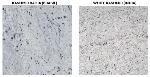 O Kashmir Bahia esteticamente é uma rocha de cor branca, granulação fina, e pontuações avermelhadas, marcada por uma leve movimentação dos seus constituintes minerais, tornando o ambiente claro e agradável.