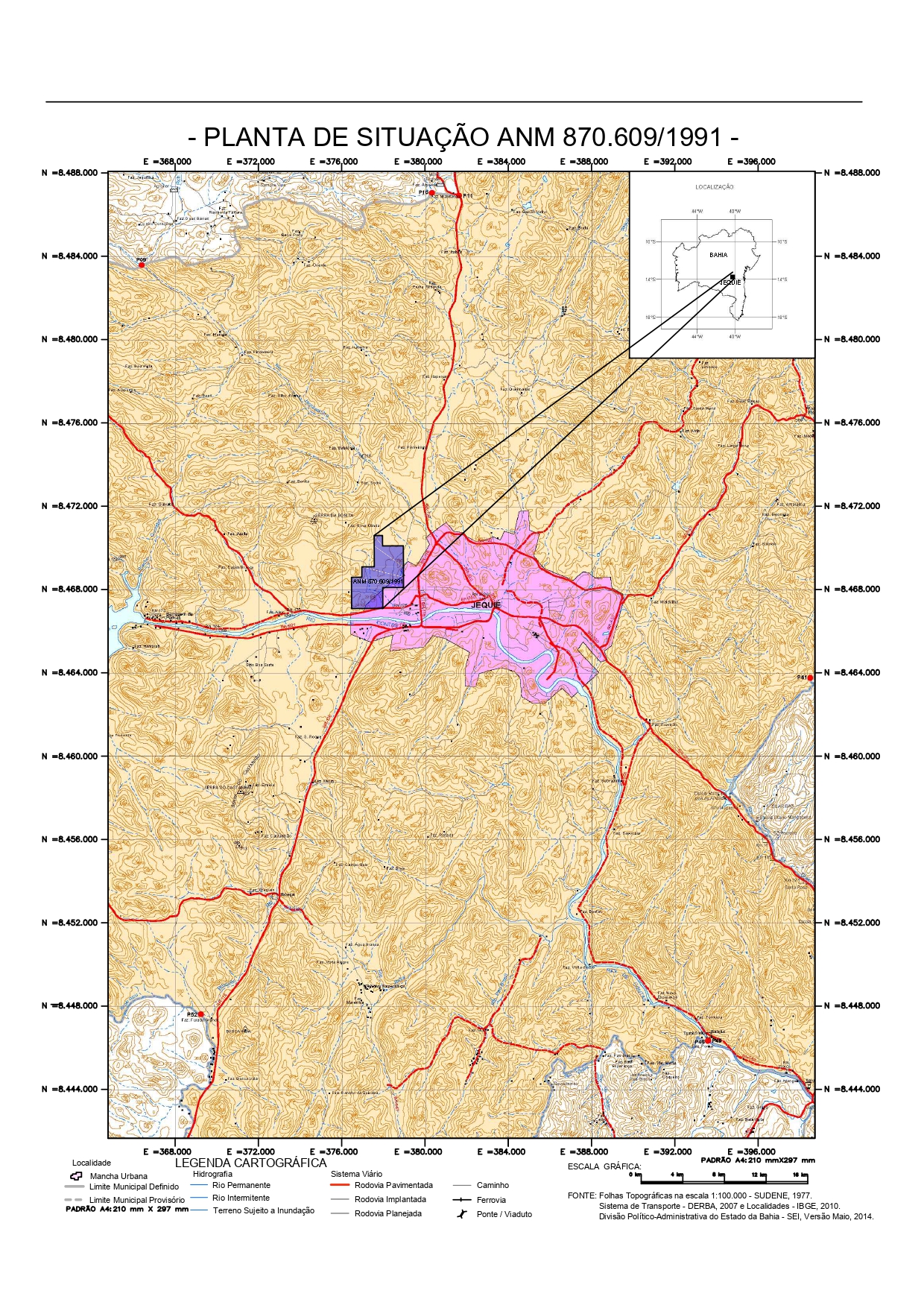 Direito Minerário: O processo minerário em fase de Requerimento de Lavra (Relatório Final de Pesquisa aprovado pela ANM em 06/02/1998). Localizado nas proximidades da área urbana do munícipio de Jequié.